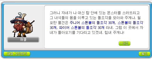 옛날메이플 반복 퀘스트 - 허클의 마법재료 모으기 (허클위치)